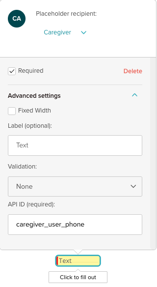 - Ensure the correct recipient is attached to that field (i.e. if it should be caregiver name it is assigned to caregiver).